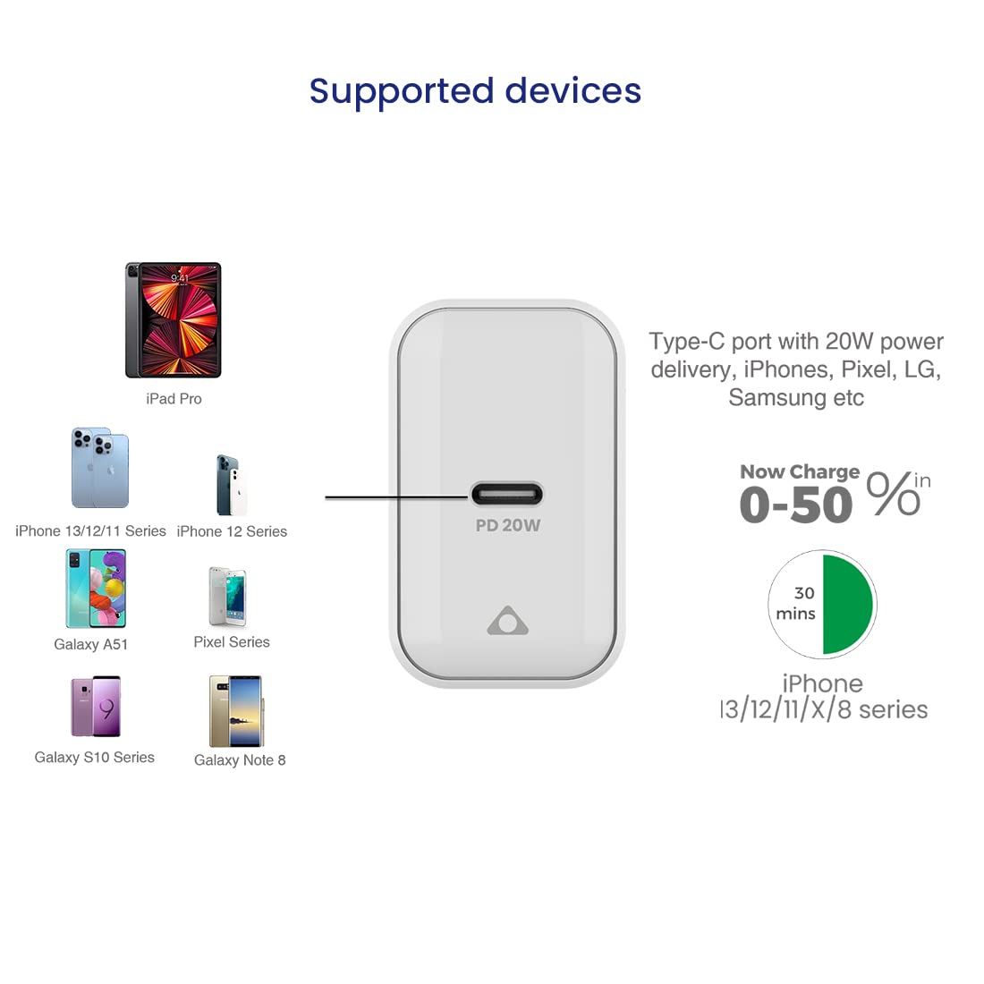 Made in India Power Delivery Fast Charger – Type-C port with 20W power delivery to charge compatible devices 50-70% faster BIS Approved: BIS certified with BIS No R-81007650. Meets indian Quality Standards and Regulations Means highest standards are followed while manufacturing this charger to ensure safety of your device. Stylish Aesthetic – Glossy on the sides & front matt Compatible Devices – iPhone 13 Pro Max, iPhone 13 Pro, iPhone 13, iPhone 13 Mini, iPhone 12, 12 Mini,12 Pro,12 Pro / iPhone 11, 11 Pro, 11 Pro Max / iPhone X, XS, XS Max, XR / iPhone 8 8 Plus, / iPad, iPad Pro, Samsung Galaxy Note 20, 20 Ultra, Note 10, Note 10 Plus, S20, S20 Plus, S20 Ultra/ 9 S10 S10 Plus S10e S9 S9 Plus / S8 S8 Plus Note 8 Google Pixel 5 , 4a, 4, 4XL / Pixel 3, 3 XL / Pixel 2 XL / Pixel 2 etc. Many new upcoming handsets will be compatible with this PD Fast Charging standard. Warranty – 6 Months Manufacturers Warranty